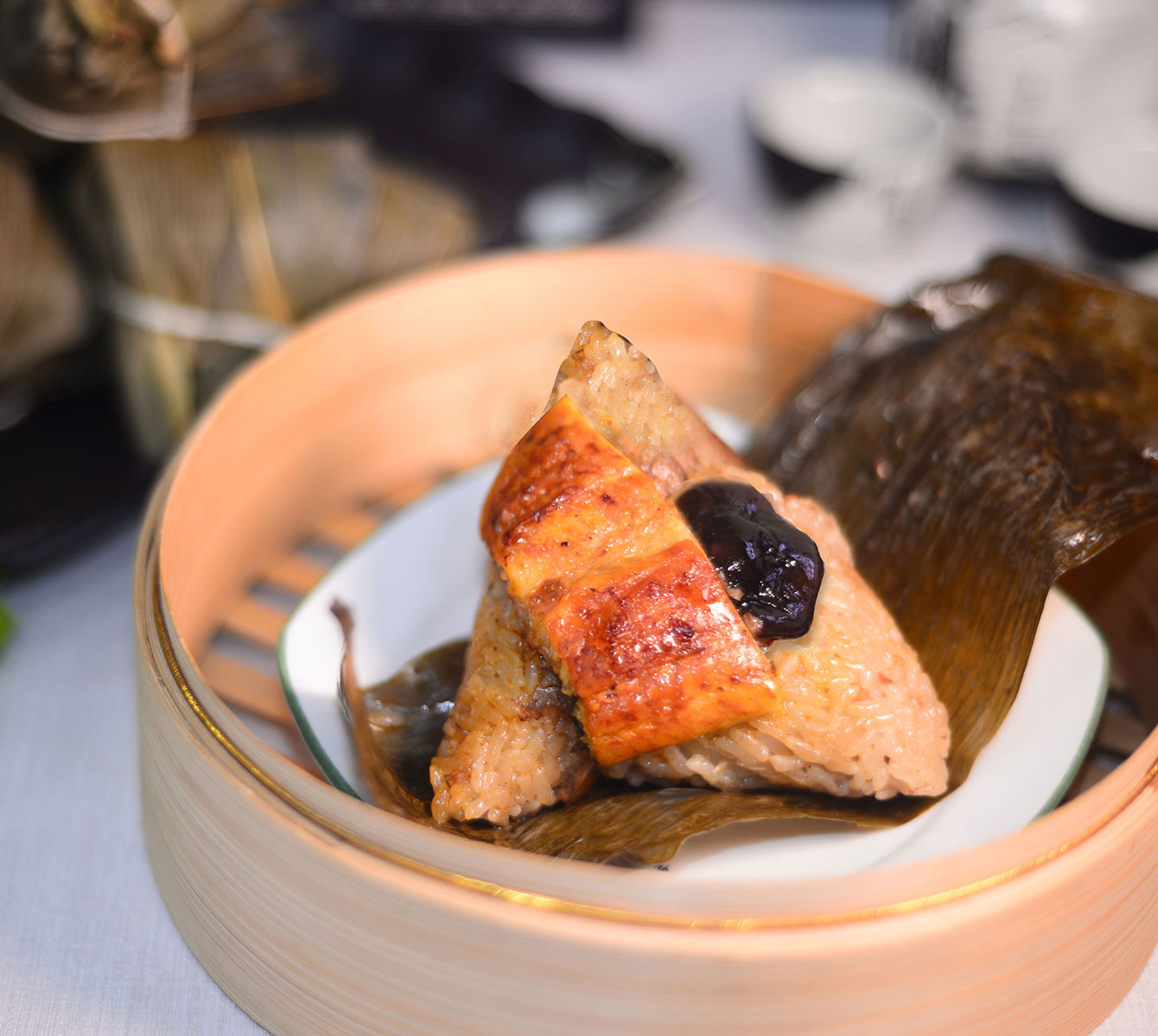 採用養殖8-10個月品質最好的鰻魚製作而成,使用高品質的圓糯米,搭配上豬肉、香菇、菜脯等食材,再加上大大一塊重約20-25公克的蒲燒鰻,令人忍不住食指大動。